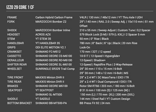 The IZZO is an energetic and responsive trail bike, designed to crush steep climbs before tearing up the descents. Built around our lightweight 130mm travel, hybrid carbon-aluminum frame, this versatile ride is our take on the classic short-travel ripper – the bike we reach for when craving efficiency and speed. At CORE 1 level, each component is hand-selected for its reliability, performance, and control, so you'll always be ready to dominate the session.