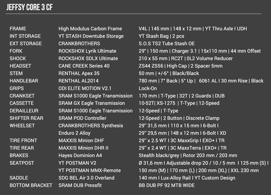 Day in, day out rippers, this is where it's at! The JEFFSY CORE 3 CF is locked and loaded for unrelenting speed on your favorite trails. Formed from High-Modulus carbon and dripping with high-end parts, this trail bike is an extension of you, and together, you'll unite to dominate any challenge. This CORE 3 spec goes big, harnessing bleeding-edge tech from RockShox and SRAM to bring control and elevate your trail-slaying game in the process.